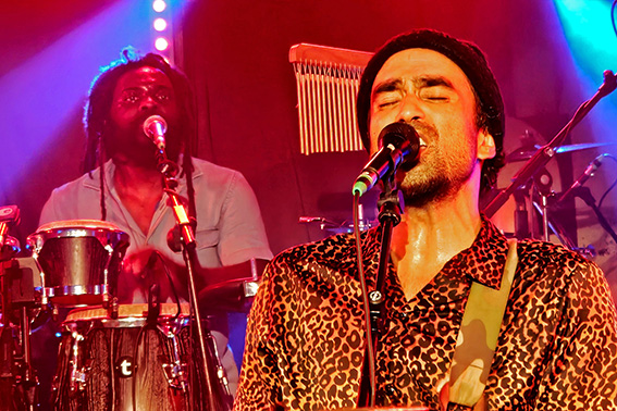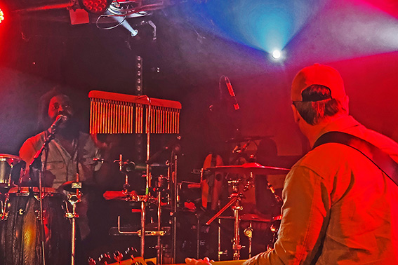 Angeheizt wie von einem Buschfeuer sorgt der studierte Jazz-Schlagzeuger Jannis Lewe derweil mal für die treibenden Rhythmen, mal für untermalende Becken-Schmeichler, dann wieder für rockige Power-Einlagen, noch verstärkt durch den regelmäßigen Gastmusiker Oshane Campbell an den Percussions. Der hat sein furioses Handwerk in seiner Heimat Jamaika gelernt, ist Stamm-Drummer von „Patrice“, außerdem mit karibischen Reggae-Ikonen auf Welttournee unterwegs und zudem so angetan von „Marley’s Ghost“, dass er, wann immer möglich, für ein zusätzliches Rhythmus-Feuer der Stammbesetzung sorgt.
