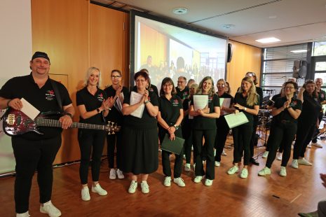 Leider verfügt die KSK in Sachen Parkplätze über keinen entsprechenden Ausdehnungszauber, so dass manche Gäste ein wenig Mühe hatten, ihr Fahrzeug ordnungsgemäß abzustellen oder pünktlich zur Eröffnung der Stiftungsgala einzutreffen. Schließlich aber war der Raum der Wünsche eröffnet und das Fest konnte beginnen. Und ein Wunsch wurde sogleich erfüllt, nämlich der von Udo Becker, der sich gewünscht hatte, dass die hauseigenen Mitarbeiterinnen und Mitarbeiter der KSK den Abend mit einer eigenen Band samt Chor gestalten.