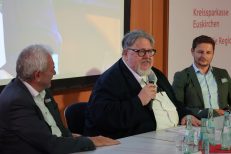 Euskirchen – Das S-Forum der Kreissparkasse Euskirchen (KSK) ist der wohl wundersamste Raum der Region. Denn dieser Raum verfügt über einen magischen Ausdehnungszauber. Während sich das Forum noch vor gut einer Woche als überschaubarer Seminarraum für die etwa 40 Teilnehmer des Kommunalforums präsentierte, fanden bei der diesjährigen Stiftungsgala an selber Stelle plötzlich 500 Menschen Platz. Und weil der Andrang der Gäste nicht abebbte, konnten die Besucherinnen und Besucher erstmalig die waltende Magie in ihrem Kreditinstitut live erleben: Der KSK-Vorstandsvorsitzende Udo Becker hob den Zauberstab und auf einmal setzten sich die großen Eingangstüren des Forums mitsamt der Trennwand in Bewegung, schoben sich zur Seite, drehten sich um 180 Grad und verschwanden einfach. Gleichzeitig wuchsen neue Stuhlreihen aus dem Boden. Gut, ganz so magisch war es nicht. Es war schon auch Muskelkraft gefragt. Selbst der designierte neue KSK-Vorstandsvorsitzende Holger Glück legte mit Hand an. Schließlich hatte er – wie schon bald aus einem Video erkennbar wurde – erst kürzlich beim DRK in Zülpich gelernt, wie man Mannschaftzelte aufbaut und Wasserhydranten anschließt.
