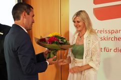 Die Zuschauer erlebten zunächst in einem kleinen Video, wie die mit der Stiftungsarbeit betrauten Herren in den vergangenen Monaten in den Vereinen mit Hand angelegt hatten, um ein tieferes Verständnis für die Tätigkeiten dort zu gewinnen. So hatte Udo Becker die Kletterabteilung des Deutschen Alpen Vereins besucht, um im Routenbau zu helfen. Holger Glück war, wie bereits erwähnt, beim DRK Zülpich zu Gast gewesen. KSK-Vorstand Wolfgang Krüger hatte an einer Dorfverschönerung der Ortsvereine in Marmagen teilgenommen und u.a. Unkraut gejätet. George Tulbure, der Kuratoriumsvorsitzende der KSK-Kultur- und Sportstiftung, stellte den KreisSportBund und seine Aktion „Sportabzeichen“ vor, bei der Stiftungsvorstand Sebastian Thur sein erstes Abzeichen abgelegt hatte – und das er am Veranstaltungsabend vom Vorsitzenden des Kreissportbunds, Markus Strauch, live überreicht bekam. Bernd Kolvenbach, Kuratoriumsvorsitzender der Bürgerstiftung, pries im Video die segensreiche Unterstützung der KSK für den Karneval an. Stiftungsvorstand Karl-Heinz Daniel war früh am Morgen bei einer Rehkitzrettung in Mutscheid gewesen, und sein Kollege Sebastian Thur hatte sich bei der Jugendarbeit der JSG Erft nützlich gemacht. Die einzelnen Videos der Projektbesuche kann man in Kürze auf den Social-Media-Kanälen der KSK ansehen.