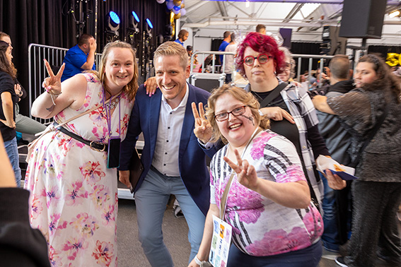 Trotz Besuchs von zahlreicher Prominenz aus Politik und Verwaltung hatte das Team bewusst auf weitere Reden oder Podiumsdiskussionen verzichtet und dafür einer ganz andern Prominenz die Bühne frei gemacht: „Brings“ ließen es zum Abschluss des gelungenen Tages mit energetischer Show und persönlichen Ansagen so richtig krachen und sorgten für Hochstimmung im Saal. Die Beschäftigten dankten es mit ausgelassenem Tanzen, Polonäsen und lautem Jubel, teilweise geschmückt mit Hüten und Westen im traditionellen Karomuster der Kölsch-Rock-Band. Zudem zeigten sie sich äußerst textsicher und sangen kräftig mit. Im lockeren Gespräch mit vielen Selfies mit den Beschäftigten zeigten Bandgründer Peter und Stephan Brings wieder ihre sozialen Werte, ließen keinen Zweifel an ihrer Einstellung („Hier sind die normalen Menschen, da draußen sind jede Menge Verrückte“) und sorgten auch so für unvergessliche Momente.