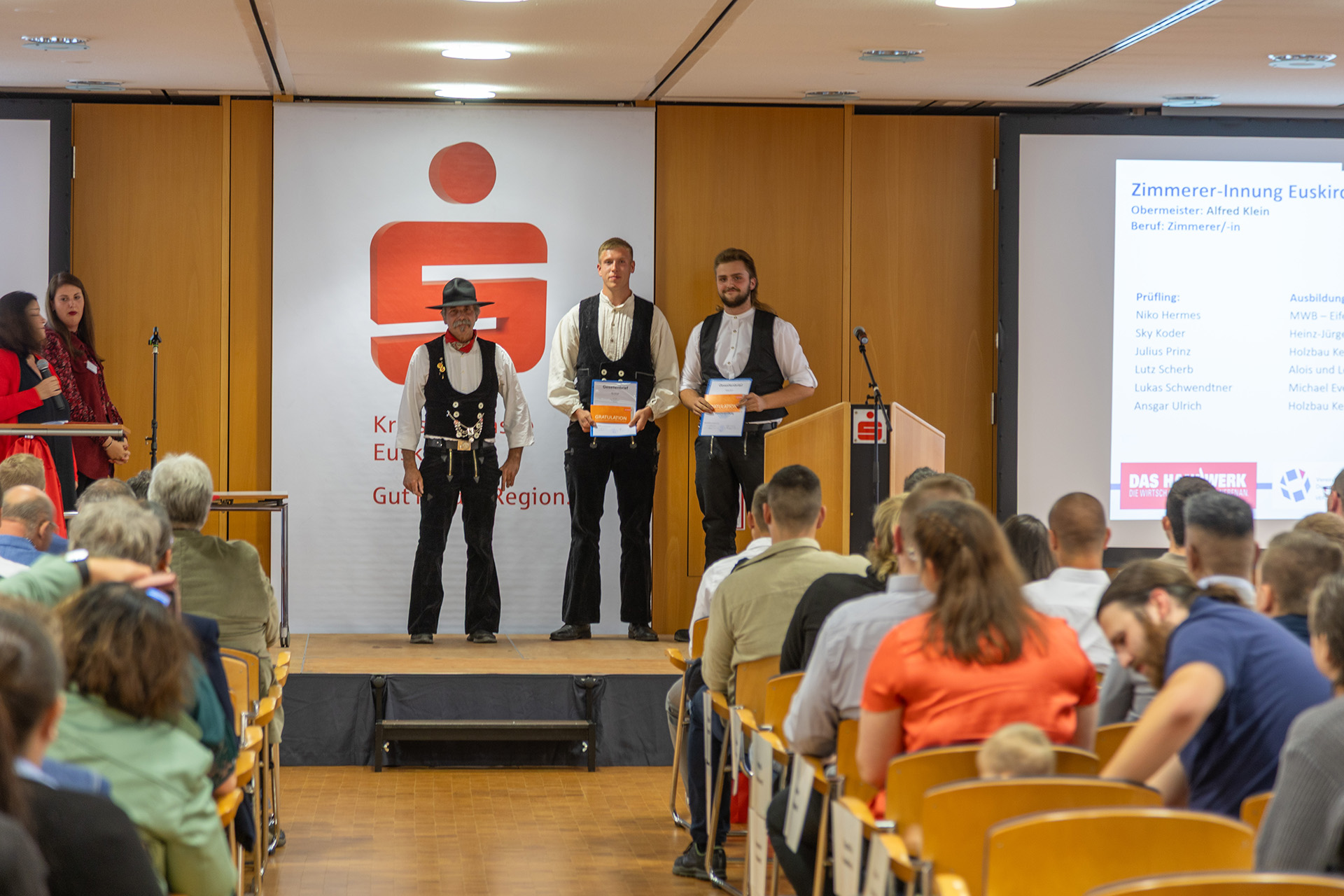 Prüfungsbeste wurden Tischler Maximilian Reinartz von Manstein-Bau, Straßenbauer Constantin Odenthal vom Betrieb Markus Schäfer, Elektroniker Nico Prinz vom Betrieb Christian Lambertz, Kraftfahrzeugmechatroniker Manuel Bertram von der Volvo Group Trucks Service GmbH, Metallbauer Louis Müller von der Schlosserei Dieter Wilden, Stuckateur Elias Schmidt vom Betrieb Michael Hermes sowie Tischler Alexander Gehrmann von den Nordeifel.Werkstätten (NE.W) Zingsheim.