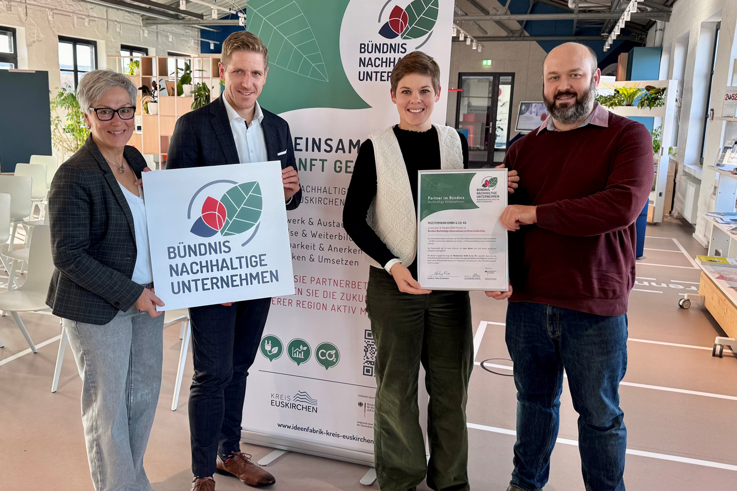 Sie freuen sich auf viele Mitstreiter im „Bündnis Nachhaltige Unternehmen“: (v.l.) Iris Poth, Landrat Markus Ramers, Alina Kramer und Max Metzemacher. Foto: W. Andres / Kreis Euskirch