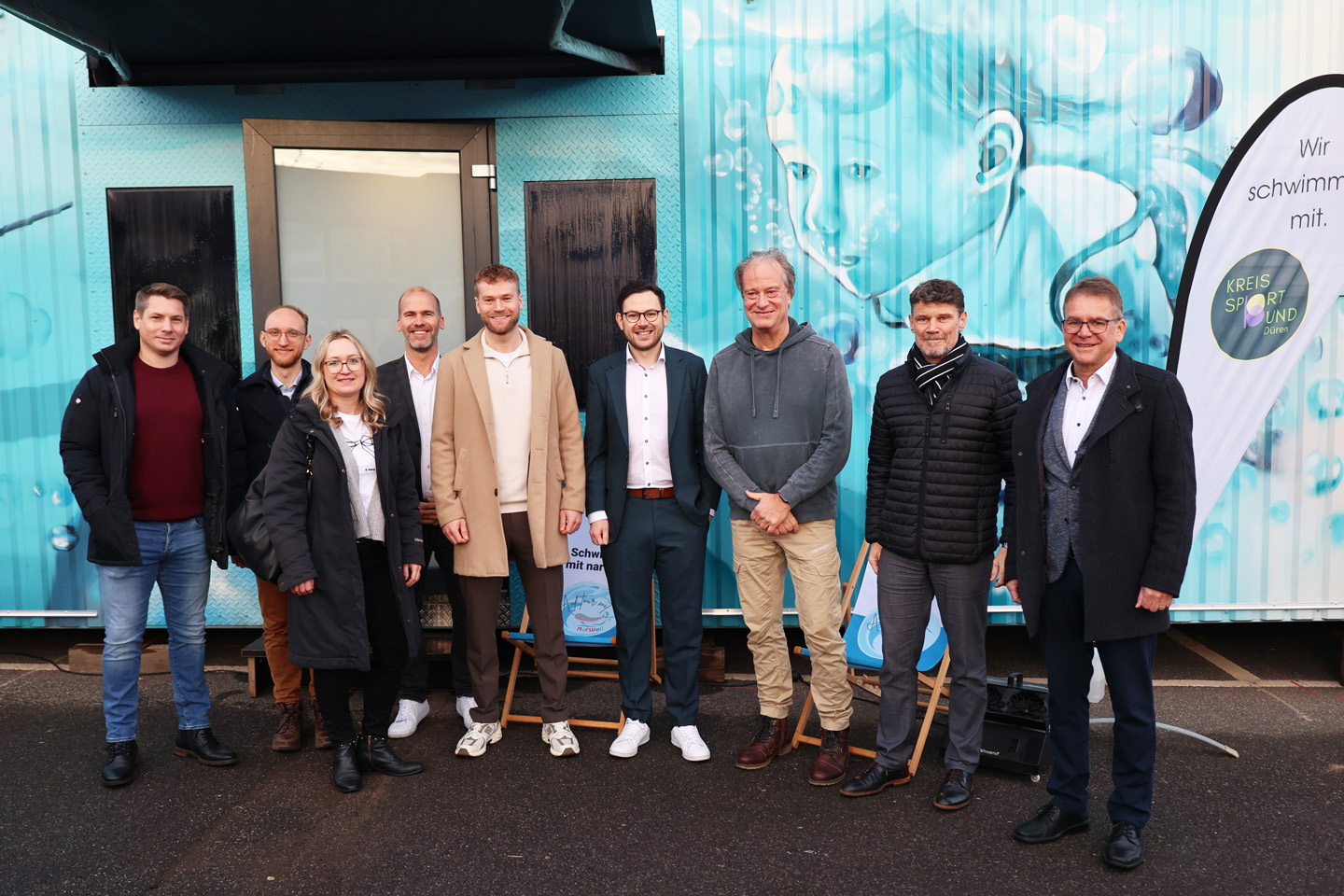 Auf dem Schulhof werden ab sofort kostenfreie Schwimmkurse für Kinder mit geschulten Übungsleiterinnen und -leitern angeboten. Die Schwimmoffensive NRW, eine von der Landesregierung Nordrhein-Westfalen im Jahr 2023 ins Leben gerufene Initiative, die dem zunehmenden Mangel an Schwimmkursangeboten entgegenwirken möchte, will mit dem mobilen Schwimmcontainer auch Zeichen für mehr Schwimmsicherheit und Chancengleichheit im ganzen Land setzen. Dass Narwali trotz langer Wartelisten nun für mehrere Wochen in Kall und damit zum zweiten Mal im Kreis Euskirchen Station macht, ist vor allem Bürgermeister Emmanuel Kunz zu verdanken.