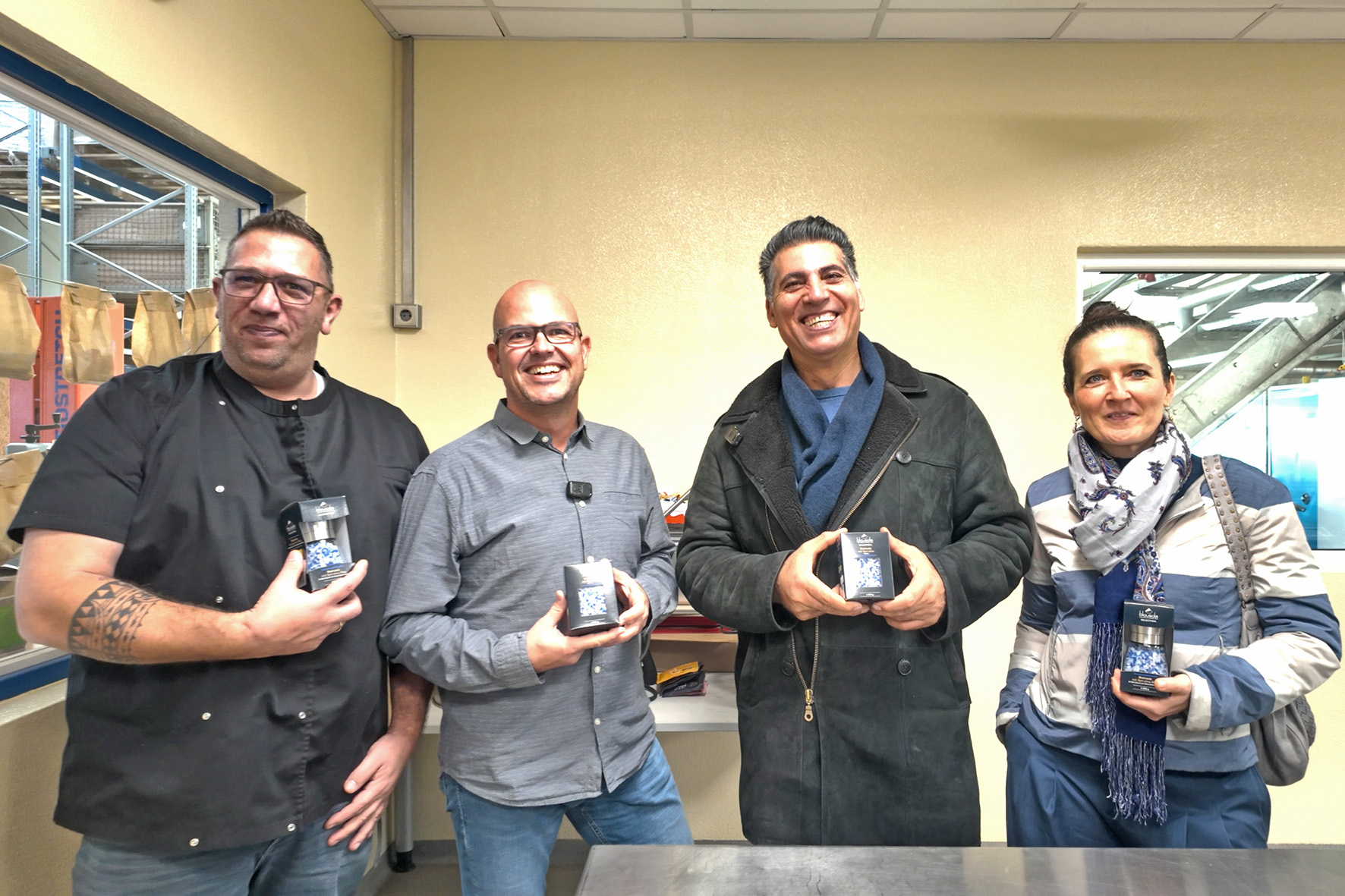Gruppenleiter Timo Strick: „Das Team unterstützt sich hervorragend gegenseitig.“ Wenn die Abläufe einmal gelernt seien, führten die Beschäftigten die Arbeit äußerst sorgfältig und mit Begeisterung aus. Im speziell für Lebensmittelabfüllungen zertifiziertem Raum ist es ruhig bis auf das Rieseln des Salzes und das Knistern der Verpackungen. Einer der Auftraggeber ist die Firma Blausalz Gourmet aus Mechernich-Satzvey, deren Geschäftsführung sich gezielt keine Großfirma mit Gewinnmaximierung als Partner ausgesucht hat, sondern mit ihrem Aufträgen soziale Verantwortung übernehmen möchte. Geschäftsführerin Olesja Bayat: „Die Menschen hier helfen uns, und wir helfen den Menschen, das finde ich wunderbar!“ Morteza Bayat schwärmt über die Aufmerksamkeit, mit der die Beschäftigten das Salz abfüllen. Das ist ihm wichtig, denn es geht nicht etwa um Tafelsalz, sondern beispielsweise um spezielle Steinsalze, die mit biozertifiziertem, blauen Spirulina und Bio-Rote-Beete-Saft aufgewertet werden.