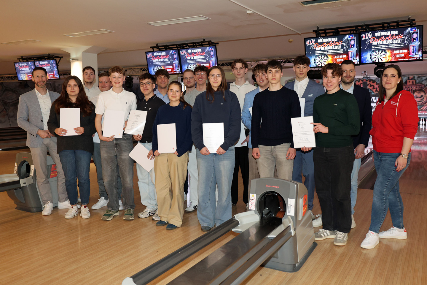 Kreissparkasse Euskirchen lud Siegerteams des „Planspiel Börse“ zur kleinen Feier mit Preisübergabe in die „Bowl Fabrik“ ein – „Hin und her macht Taschen leer!“